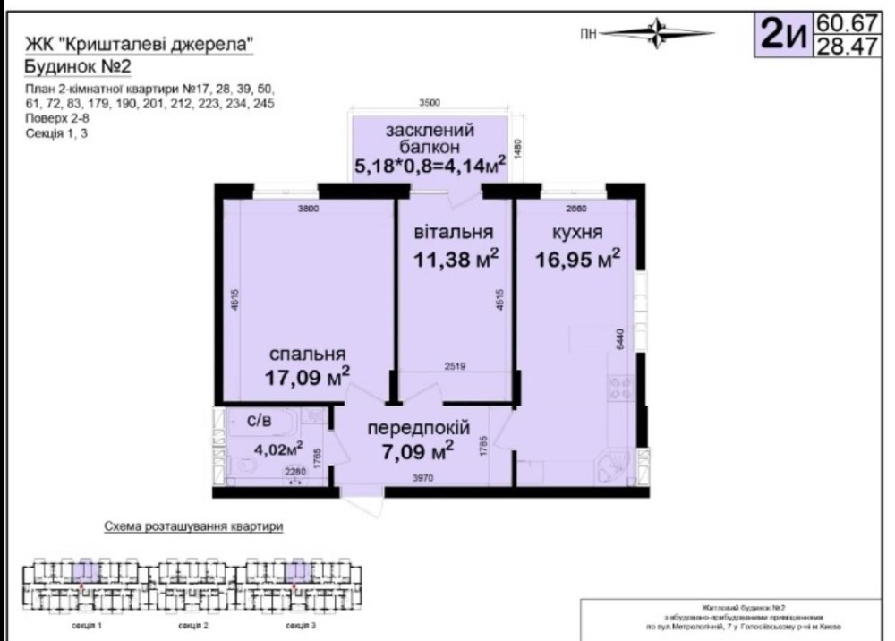 • Загальна площа квартири - 63м2 .