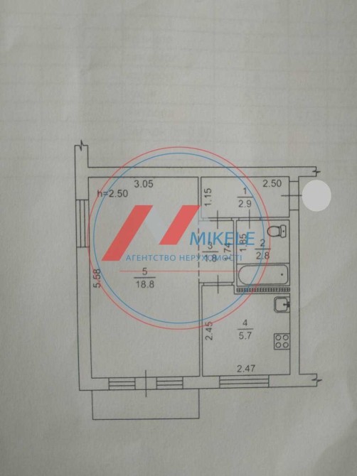 Квартира має 32м2 та розташована на 5-му поверсі, має продумане планування: