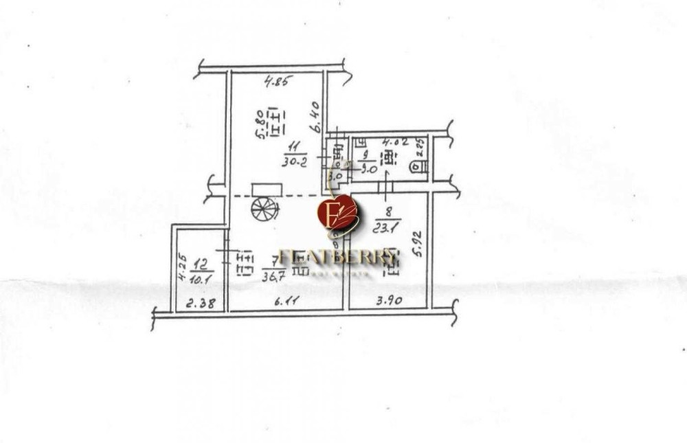 Загальна площа — 204,5 м². Квартира світла, простора, без меблів. Може використовуватись як для проживання, так і під офісне приміщення.