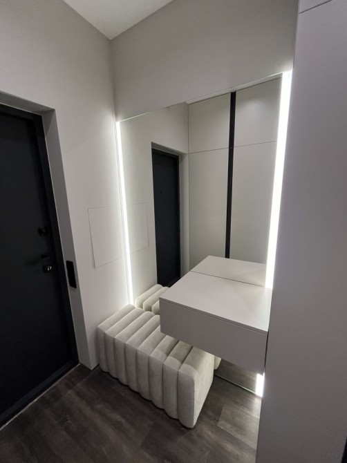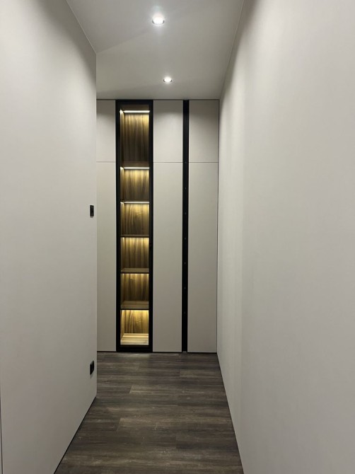 Вхідна зона з великими шафами для зберігання речей.