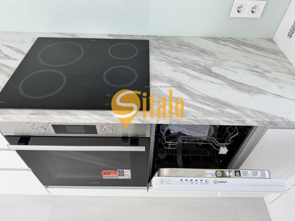 Кухня повністю укомплектована: варильна поверхня, мікрохвильова піч, духова шафа, посудомийна машина, пральна машина. Кондиціонери.