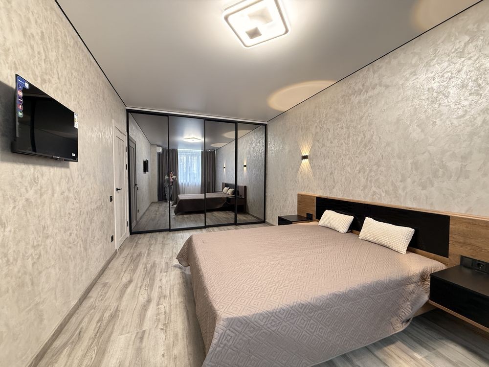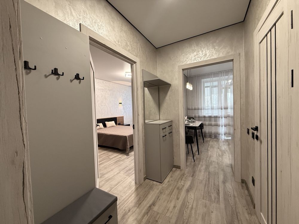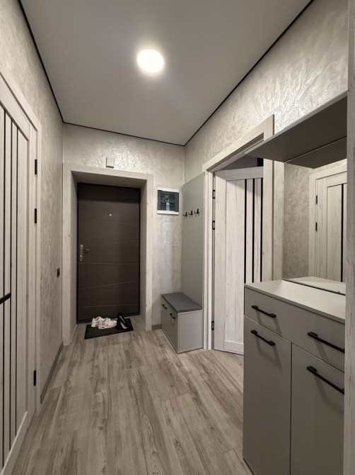 Просторий коридор. Велика кімната 20 кв,м з вбудованою гардеробною, зручним ліжком. Кухня з вбудованими меблями та технікою. Велика лоджія 9 кв.м зроблена, як кімната з батареєю та теплою підлогою. Санвузол просто супер. Індивідуальне опалення та лічильники, газовий котел.