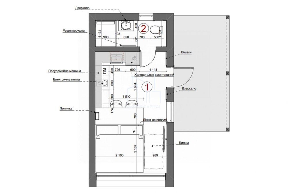• Загальна площа 20 м2