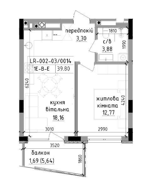 • Загальна площа 34.64 м2