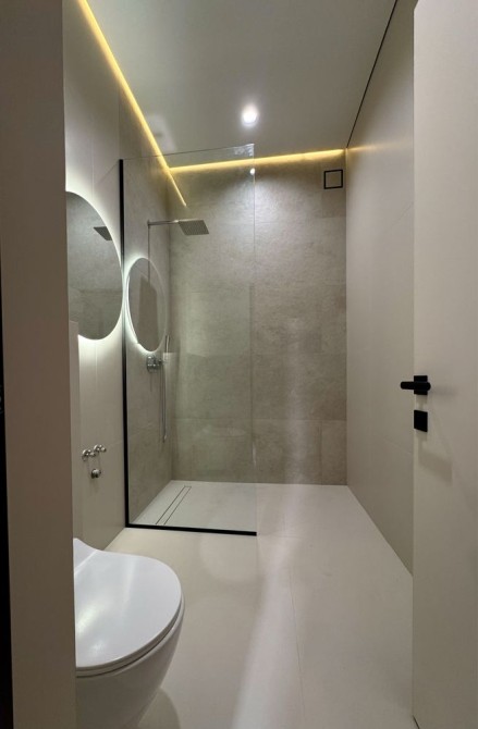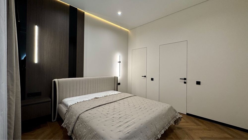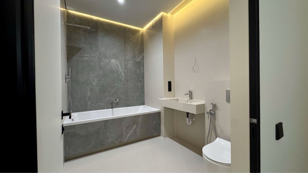 Виконаний якісний дизайнерський ремонт із використанням натурального каменю, німецького вінілу та різних сценаріїв освітлення в кожній зоні.