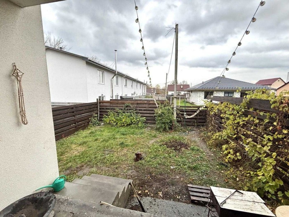 Просторий кутовий таунхаус біля Бучанського парку, ЖК «Мальовничий». Пропонується до продажу затишний кутовий таунхаус у ЖК «Мальовничий» — закрита територія з охороною, автоматичні ворота, сусідство з природою та одночасно близькість до всієї інфраструктури. Площа будинку: 120 м² + сухий підвал 40 м² (вхід із будинку, може слугувати укриттям). Поверховість: 2 поверхи + житлова мансарда = 3 рівні + підвал. Ділянка: 1,78 сотки. Санвузлів: 2. Балкон і 2 тераси (на 1-му та 2-му поверхах). Газ: заведений, встановлено двоконтурний газовий котел (опалення можна доробити без штроблення стін). Водопостачання та каналізація: централізовані. Електрика: 15 кВт (день/ніч, договір з ДТЕК). Матеріал стін: керамоблок. Утеплення: пінопласт. Опалення: інвекторний кондиціонер + електрорадіатори по поверхах + камін (резервне). Зарядка для електромобіля. Будинок у житловому стані з незакінченим ремонтом. Є дизайн-проєкт — йде в подарунок. Простора ділянка з мангалом, виноградом, малиною, черешнями, руколою, колоновидними деревами. Є місце для господарських потреб, зберігання дров, мототехніки. Вікна виходять на озеро — панорамний краєвид із тераси.