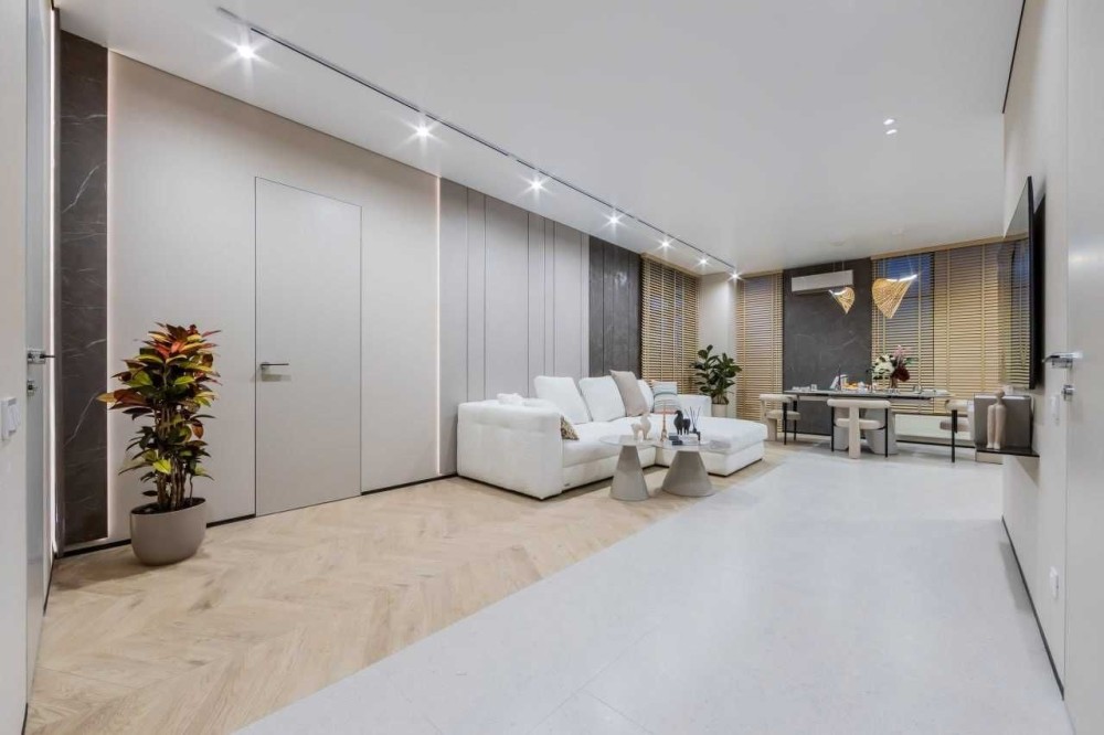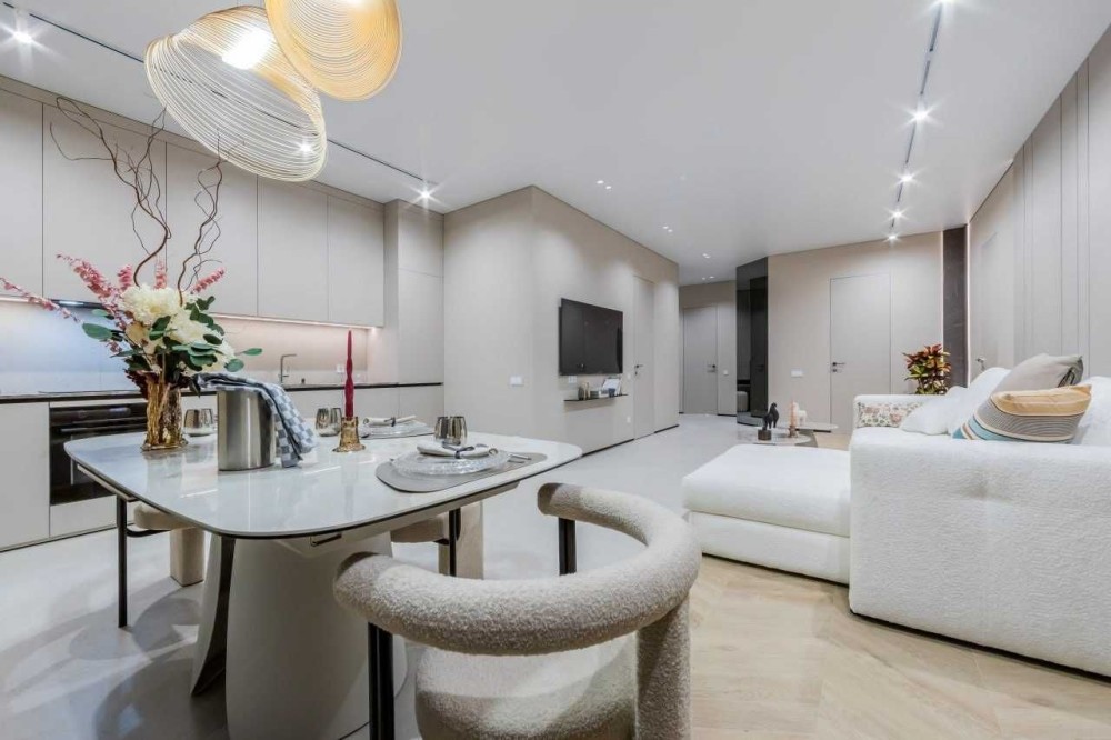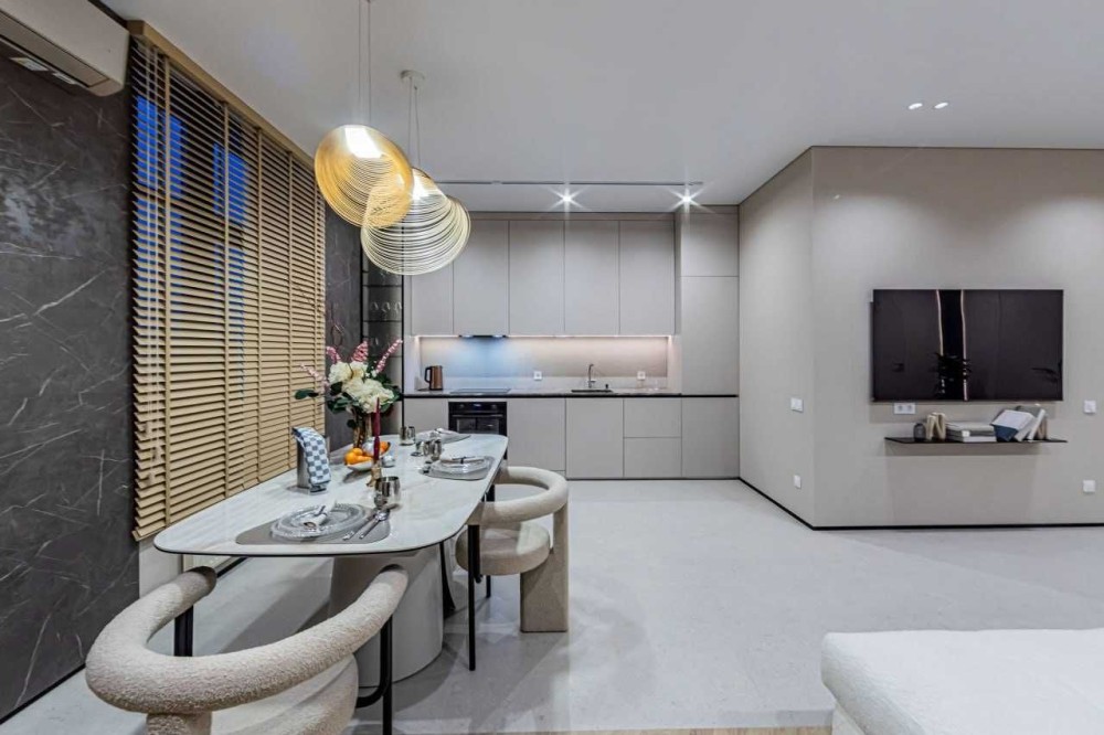 Квартира виконана в сучасному стилі з використанням високоякісних матеріалів. Просторі кімнати наповнені природним світлом, що створює затишну атмосферу.