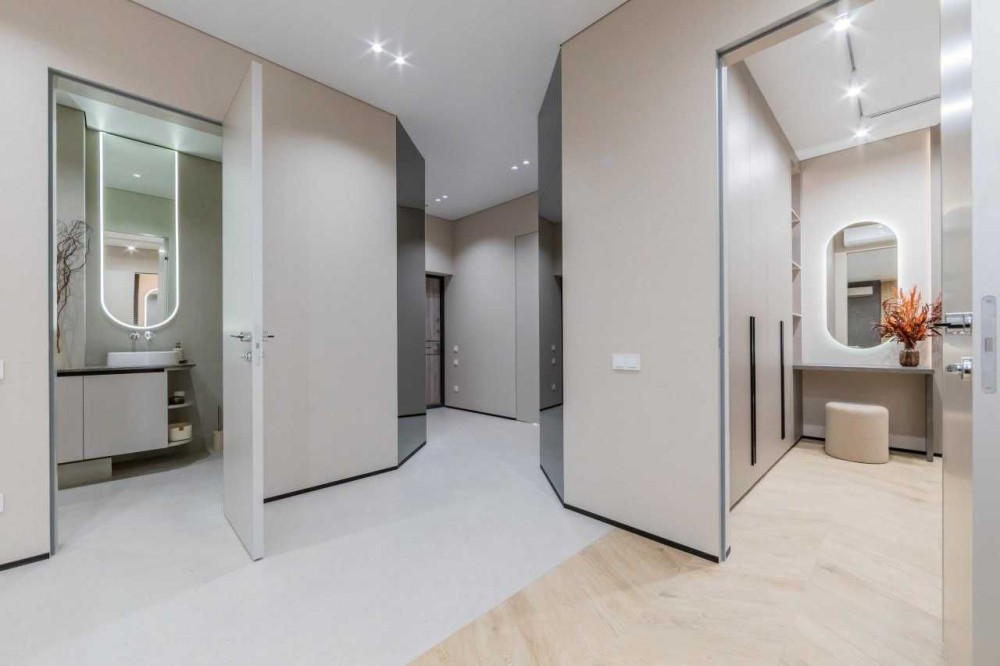 Планування: кухня-вітальня окрема спальня, 2 гардеробні кімнати, санвузол