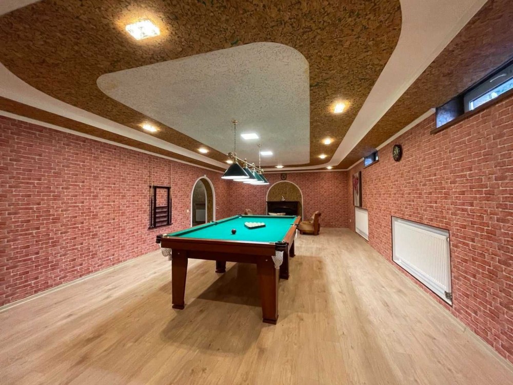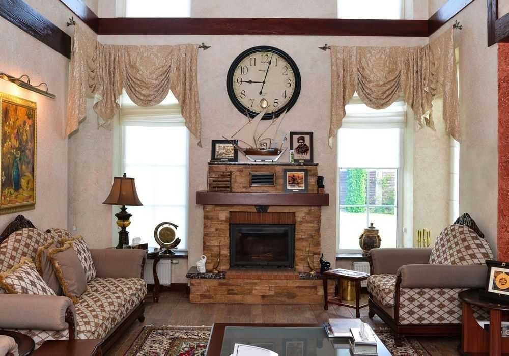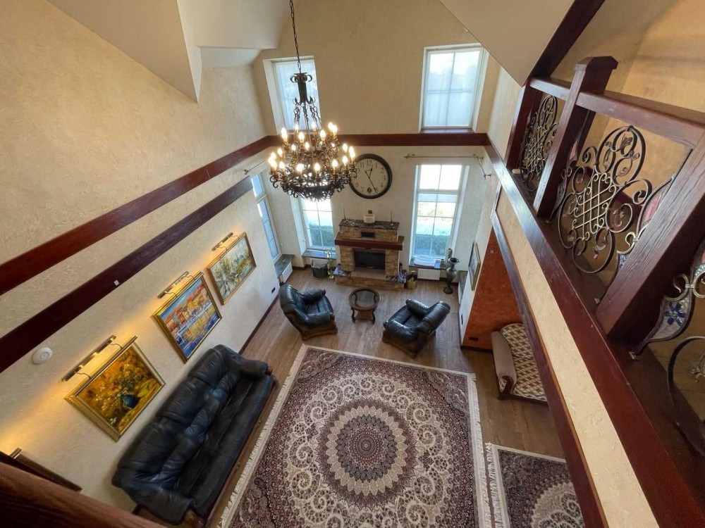 Високі стелі: у камінній зоні центральної частини будинку висота стелі сягає 7 метрів, створюючи відчуття простору та величі