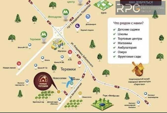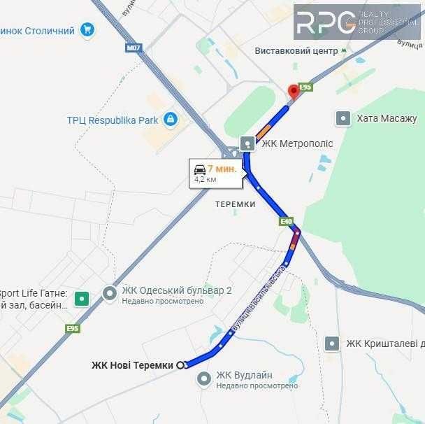 * Зручна локація – 2 км до метро Теремки, Іподром - на авто 7 хвилин, пішки - 30 хв.