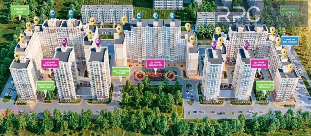 Власна інфраструктура, бізнес-зона, дитячі майданчики та мальовничі краєвиди на місто.