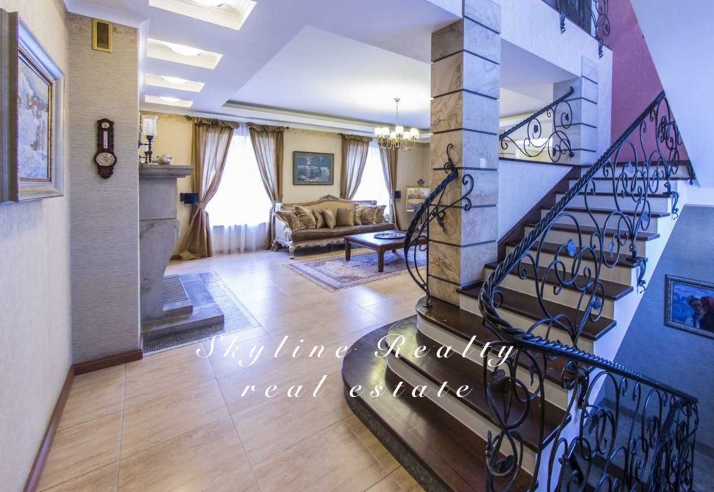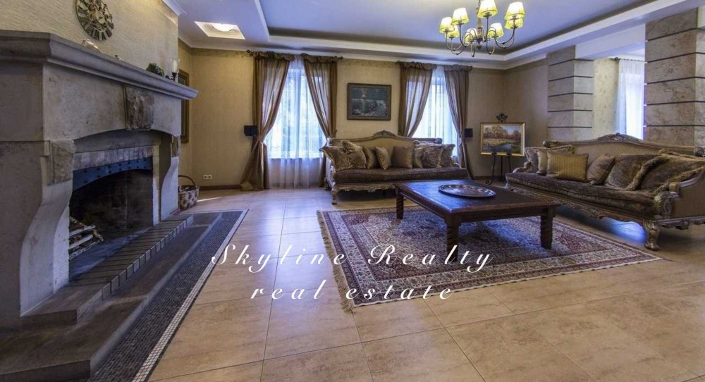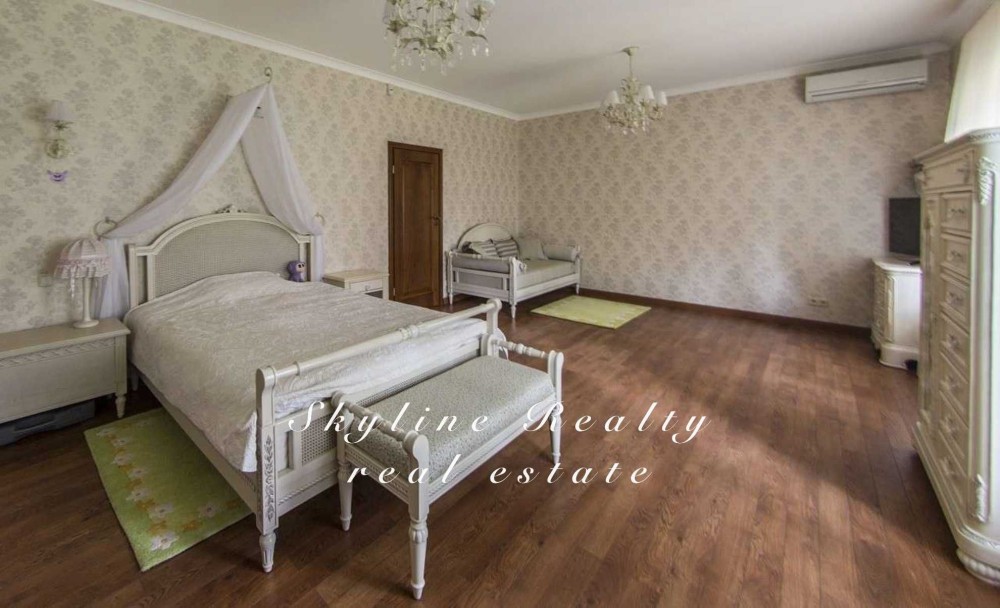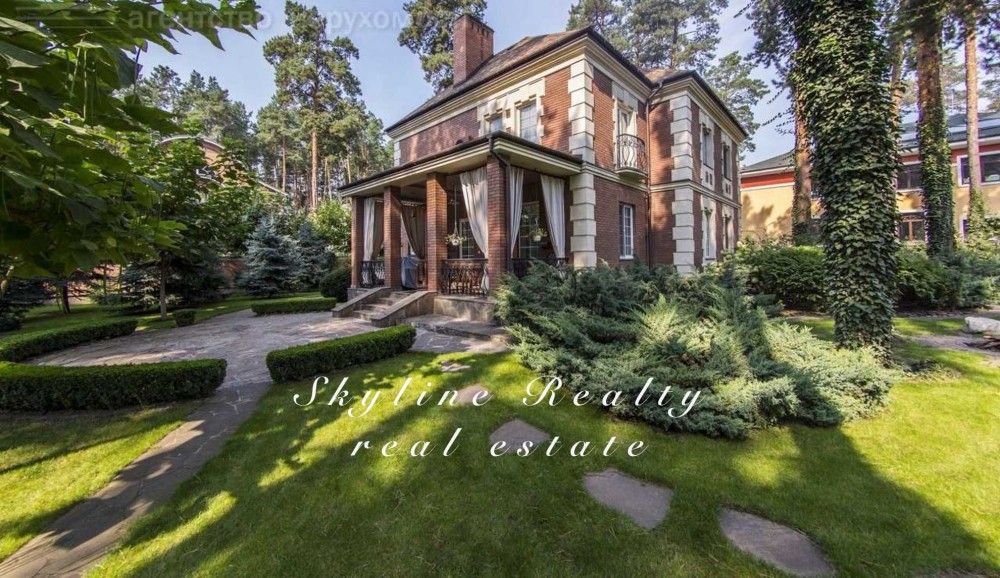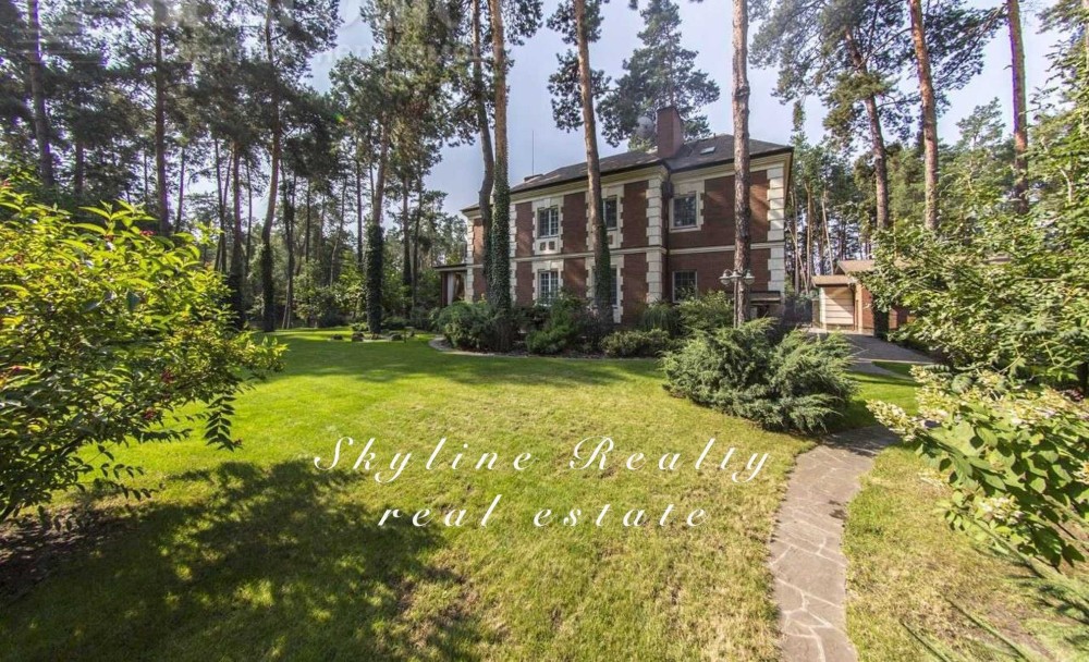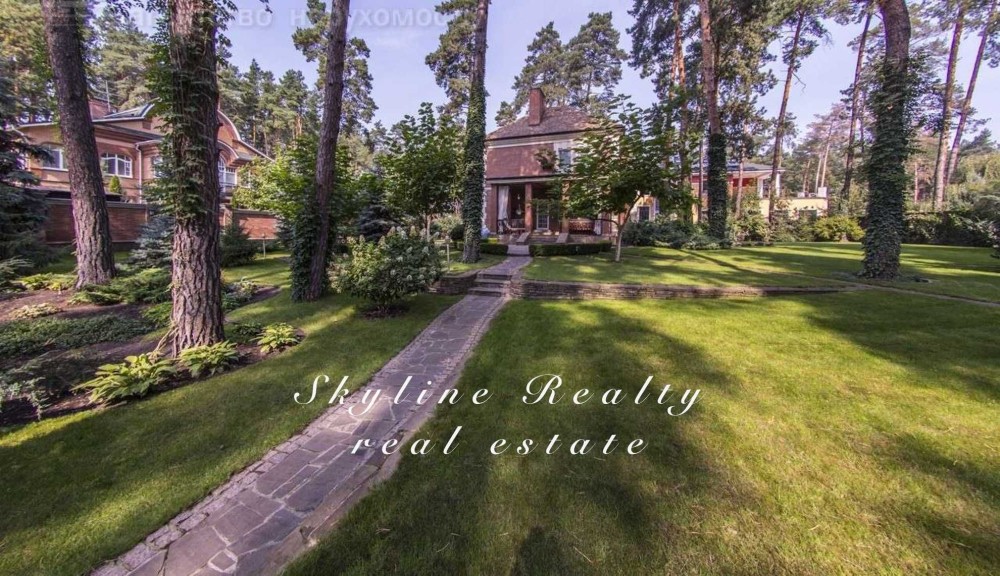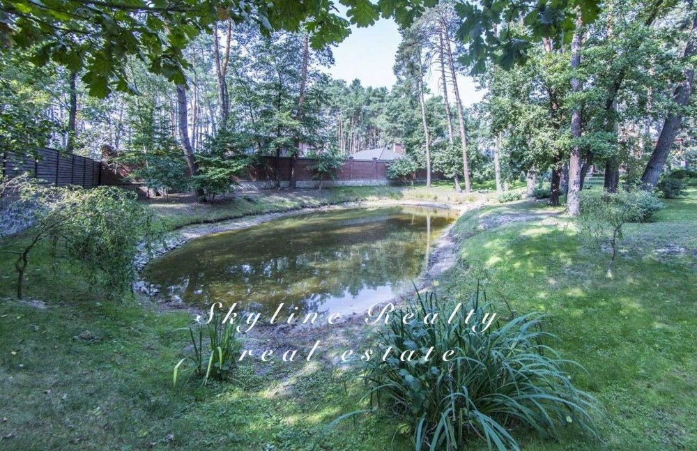 Пропонується будинок площею 400 м² з авторським дизайном у класичному англійському стилі. Розташований у престижному селищі Романків, серед соснового лісу, на доглянутій ділянці площею 50 соток із власним озером та віковими соснами. Будинок повністю мебльований та обладнаний сучасною технікою.
