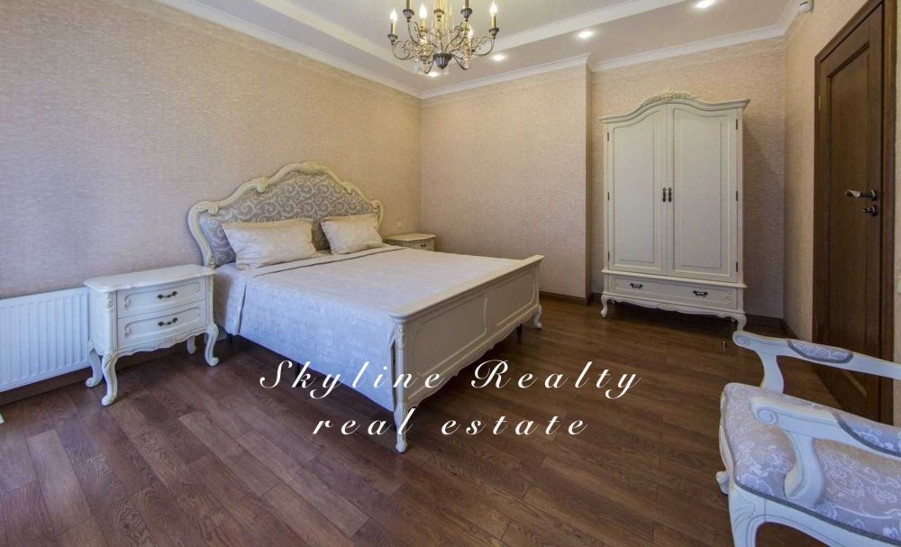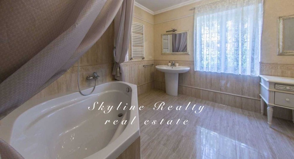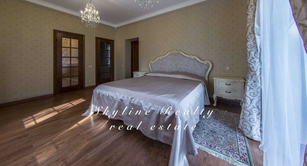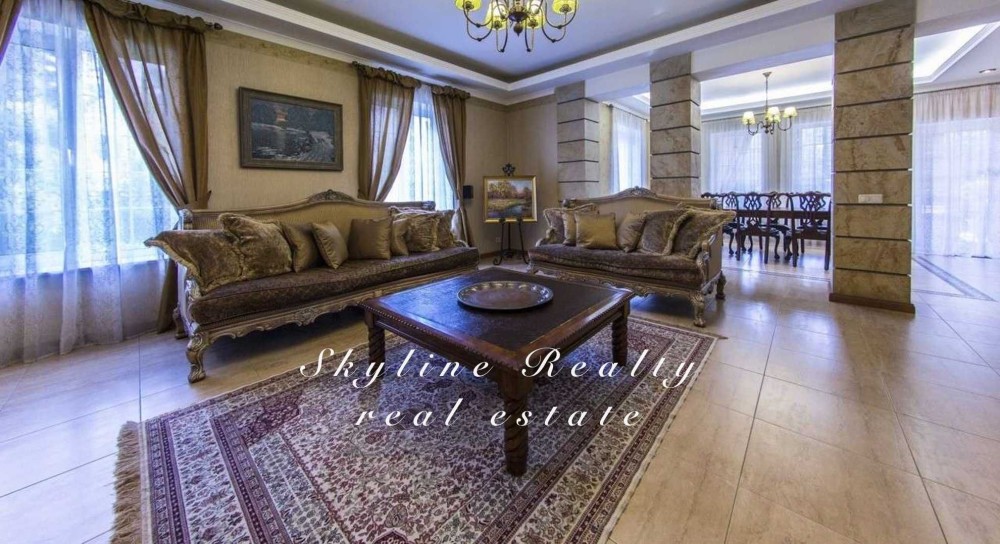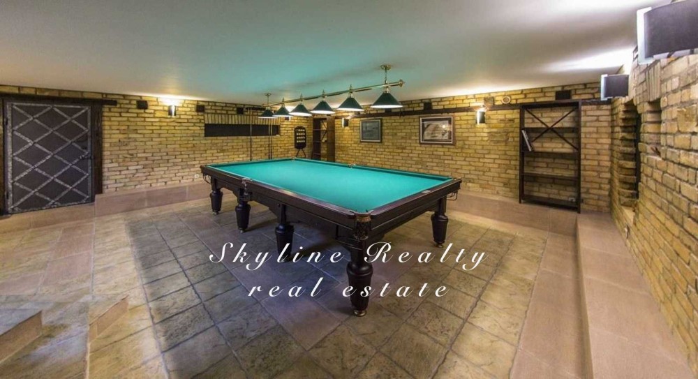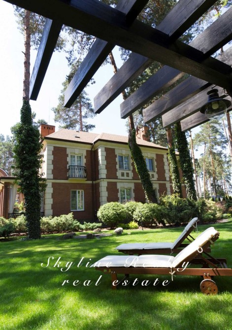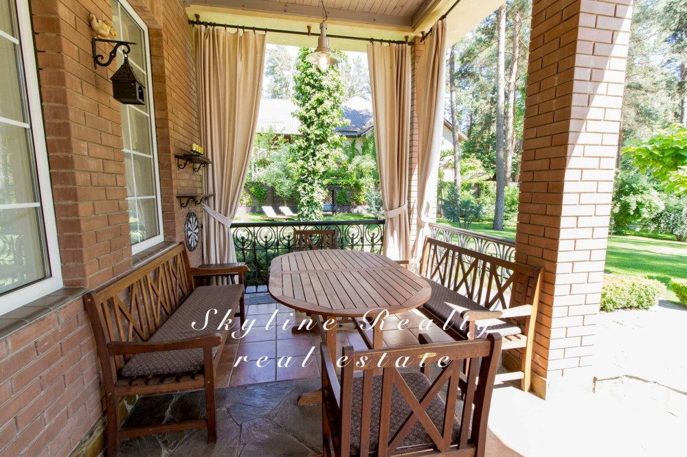 Пропонується будинок площею 400 м² з авторським дизайном у класичному англійському стилі. Розташований у престижному селищі Романків, серед соснового лісу, на доглянутій ділянці площею 50 соток із власним озером та віковими соснами. Будинок повністю мебльований та обладнаний сучасною технікою.