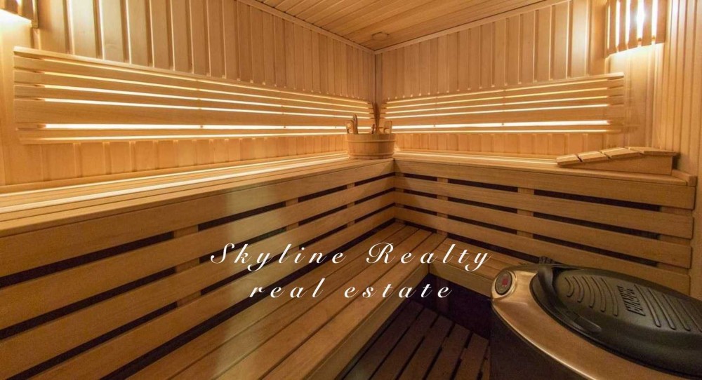 Перший поверх: просторий хол, вітальня з каміном, кухня-їдальня з виходом на відкриту терасу та ліс, сауна, гостьова кімната.