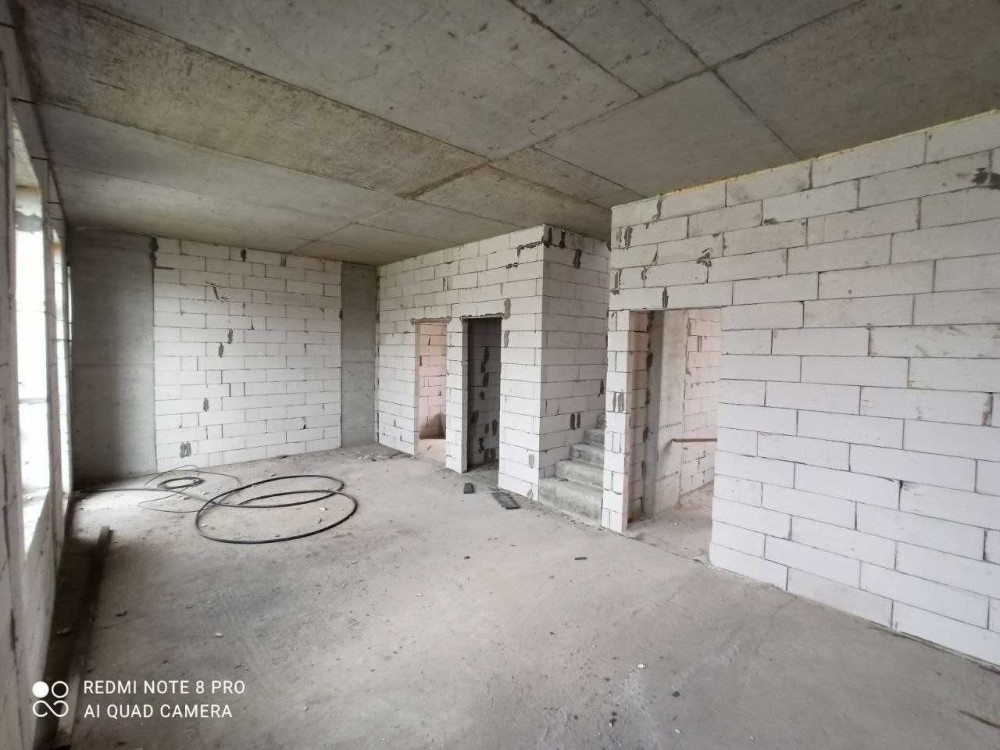 Будинок: стрічковий фундамент утеплений фасад 100 мм, залізобетонне перекриття, дах з 200 мм утепленням, залізобетонні сходи на другий поверх, енергозберегаючі вікна 70 мм/3 скла, комунікації - 32А електрика, вода з свердловини, водовідведення - заведено в будинок, вентиляція, h-3,5m.