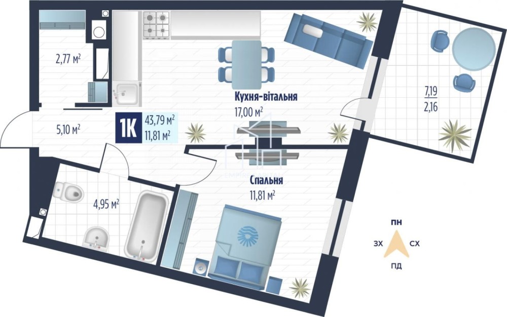 • Загальна площа 43 м2