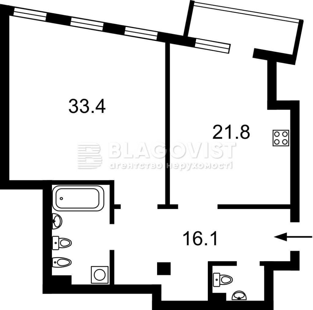 • Площа кухні 21.8 м2
