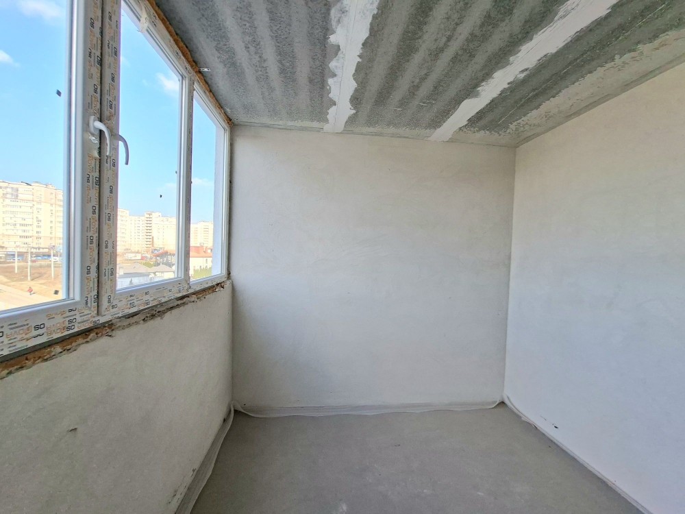 Квартира має окрему спальню кімнату, інша кімната це велика лоджія , великий коридор суміжний санвузол та ванна кімната та окрема кухня.
