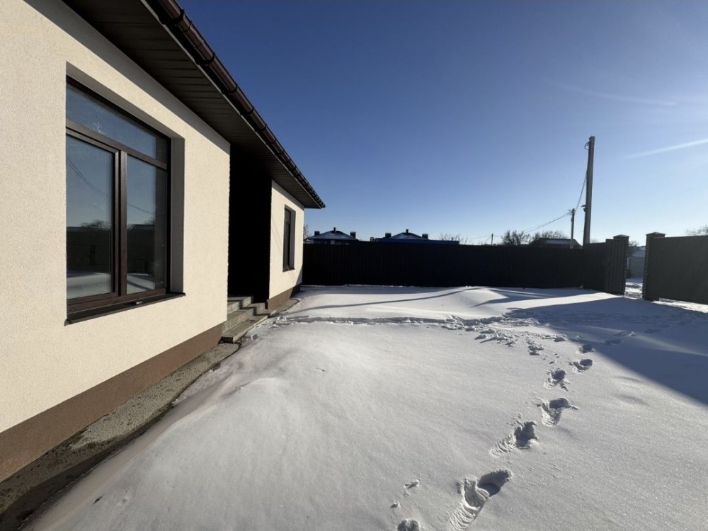Продам просторий одноповерховий будинок 140м в с. Петропавлівська Борщагівка вул. Мельниченка. Побудований з якісного газоблоку d- 600. Утеплений пінопластом 10 см.