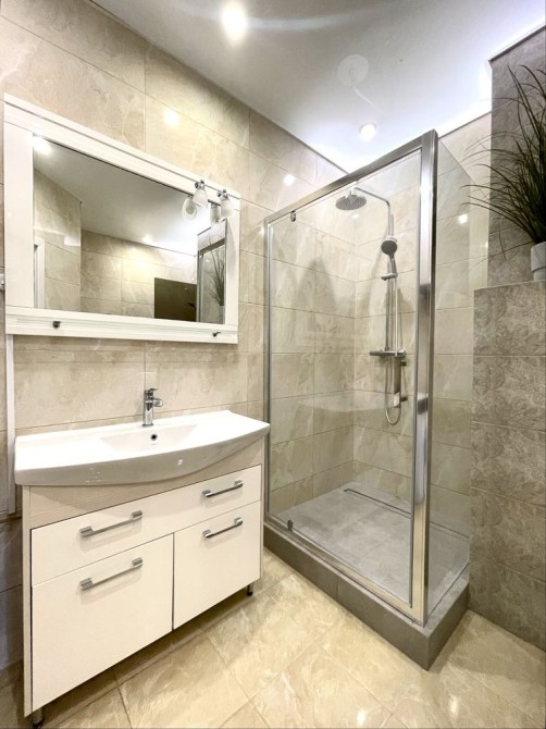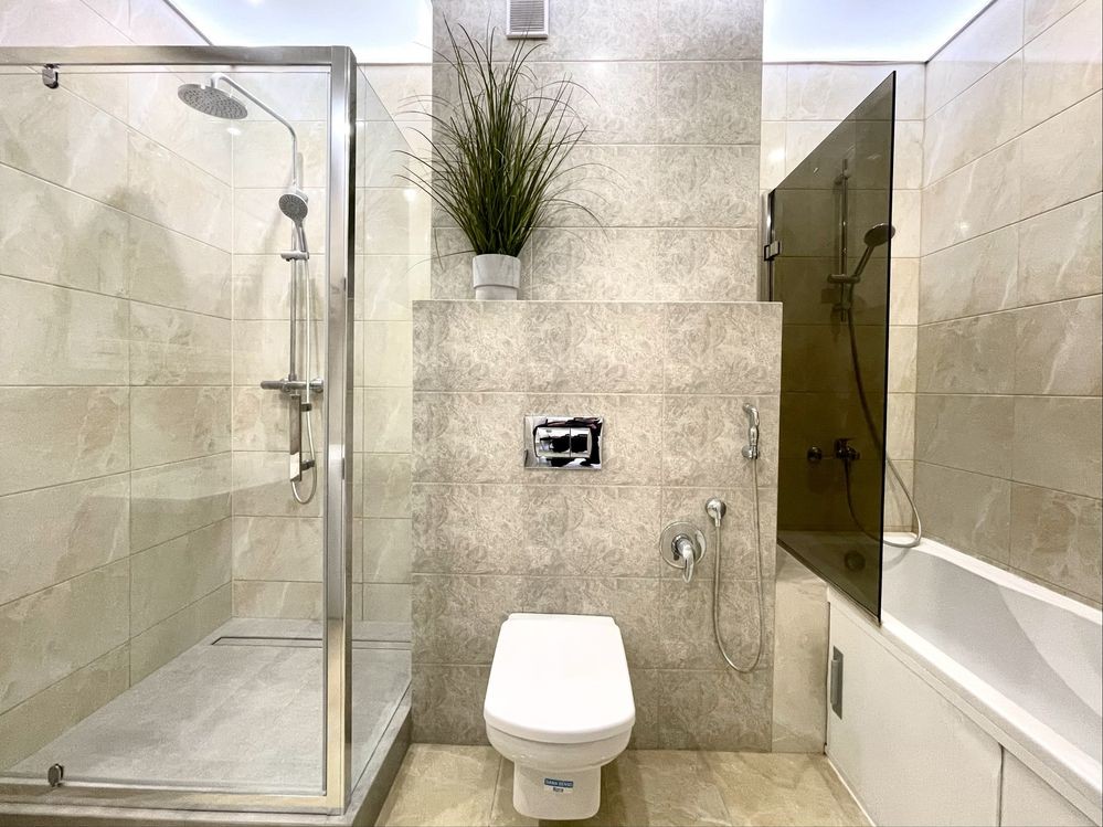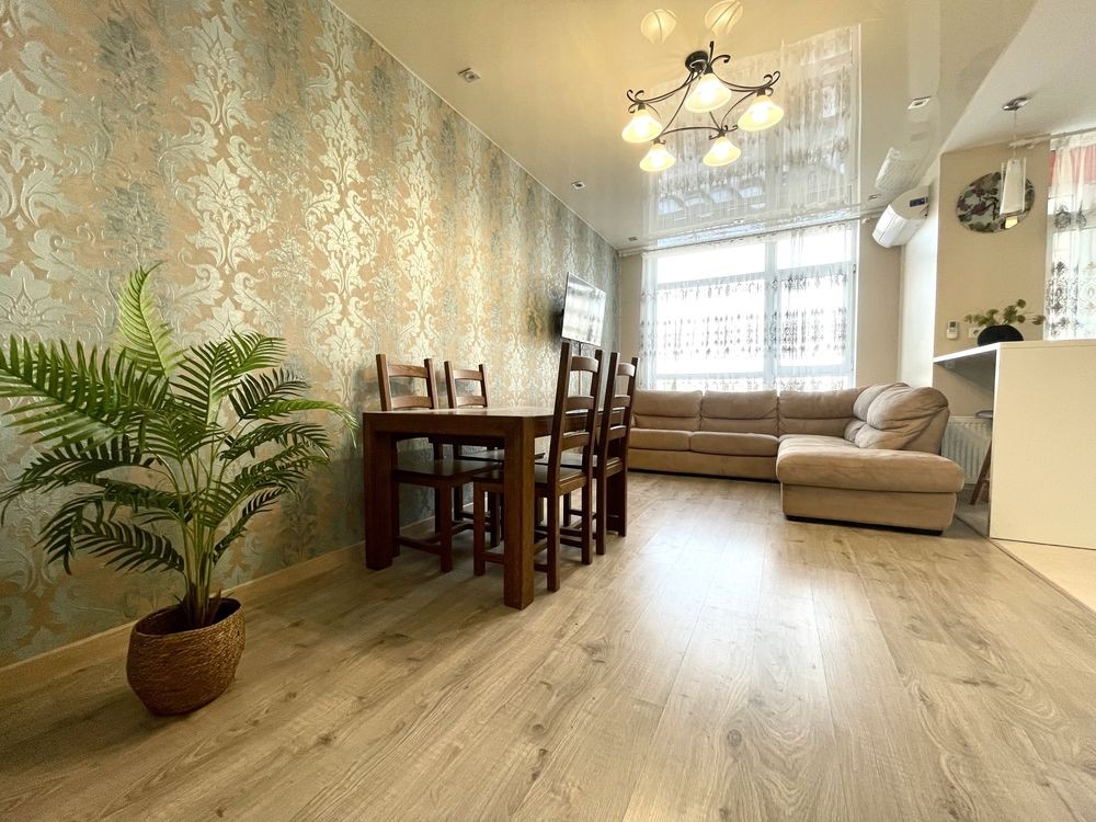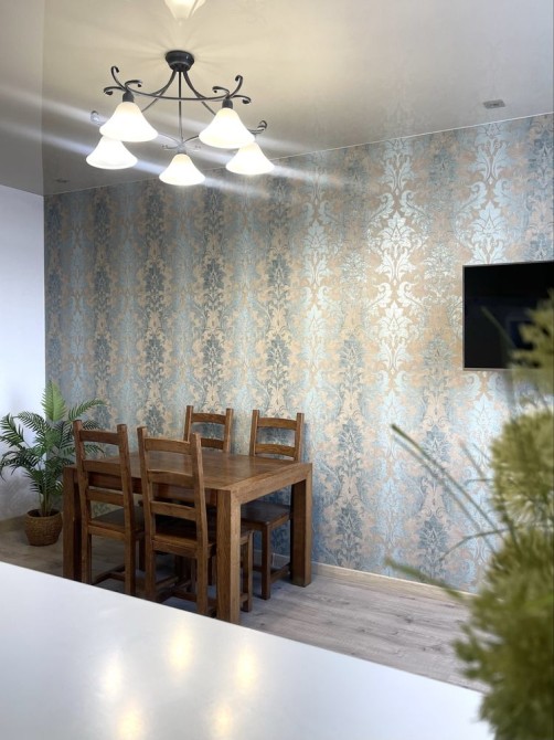 • Євроремонт, на стінах шпалери, на підлозі плитка та ламінат, в місцях де плитка встановлена тепла підлога