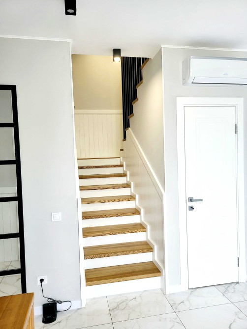 Без комісії ,від власника ,продам будинок 163м.кв,з авторським ремонтом в скандинавському стилі.На першому поверсі розташована кухня-студія ,гардеробна і санвузол з ванною.На другому поверсі 4 спальні і санвузол з душовою кабіною і пральною машиною.Тепла підлога повністю перший поверх і санвузол на другому поверсі.В цоколі будинку розташтваний гараж на 1 машину. Встановлена якісна багаторівнева очисна система води. В свердловині встановлено насос Grundfos sq 3-105. Бак для води 300 літрів. Зроблений 3 рівневий перелевний септик. Будинок має 2 види опалення : газ або електрика, встановлені відповідні котли. Система відеонагляду hikvision. Генератор двопаливний на 6,5 кВт. Усі меблі виготовлені під замовлення з фурнітурою blum. Будинок продається повністю мебльованим з побутовою технікою: