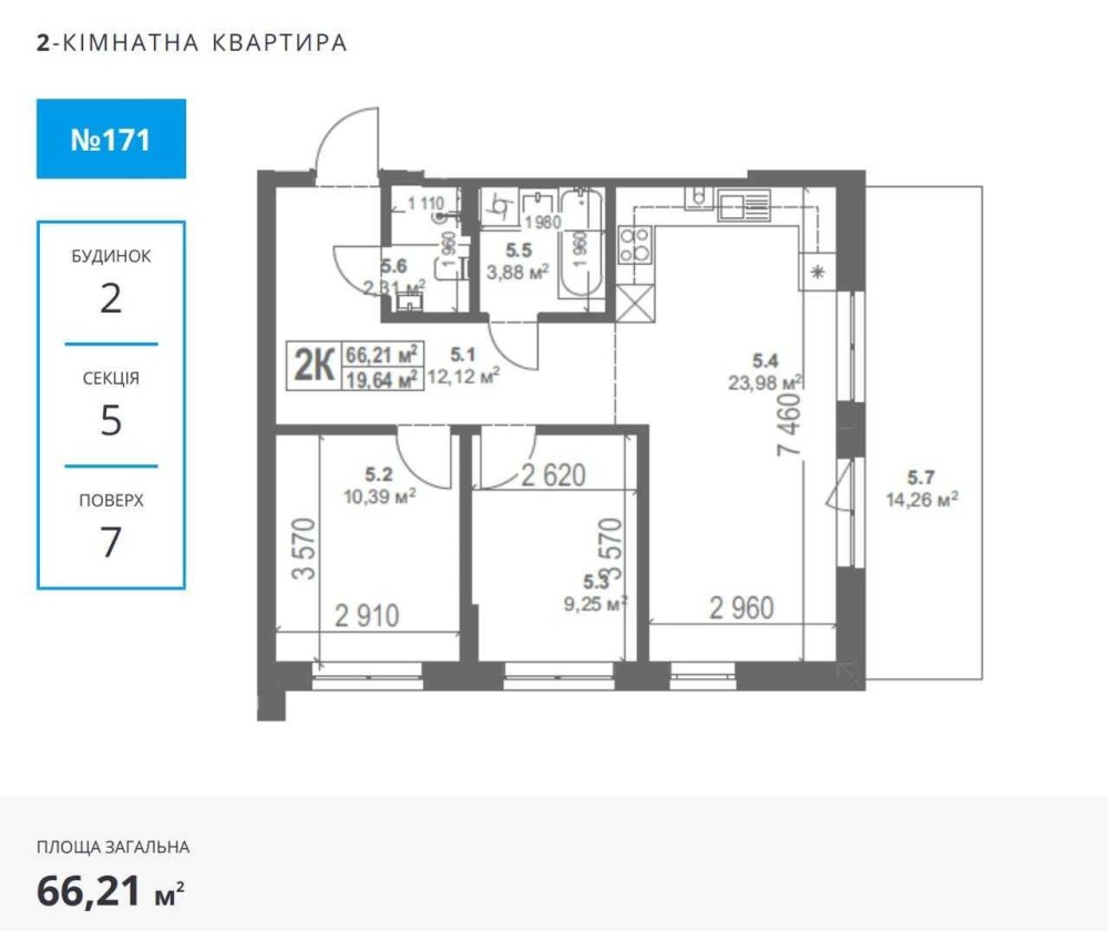 • Загальна площа 66.21 м2