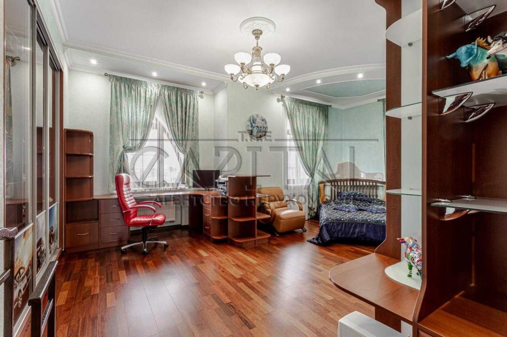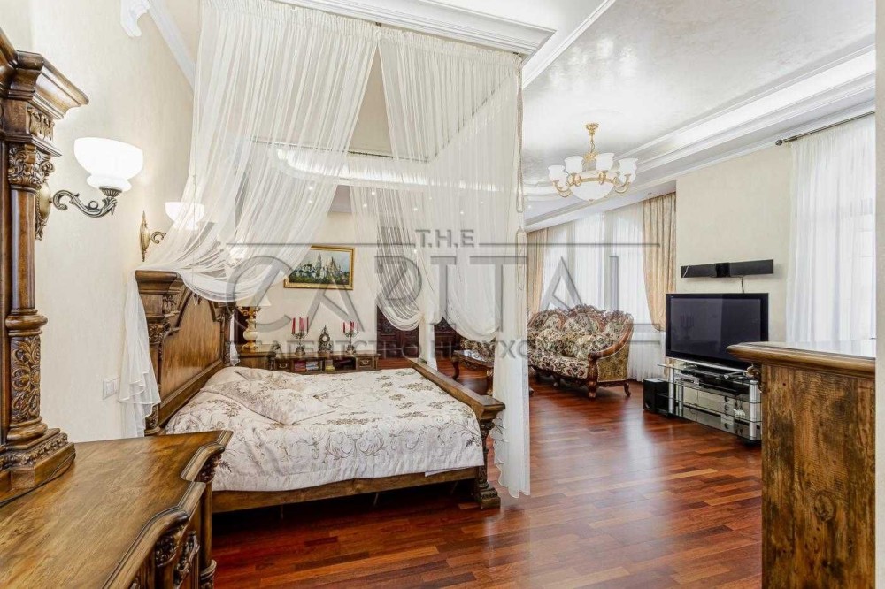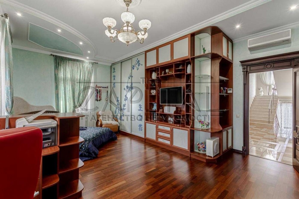 1. Основній будинок (589,4 м2): кількість поверхів чотири (цокольний + 2 поверхи + мансарда), спалень чотири, санвузлів чотири, гардеробів 3 та в кожній кімнаті окремі шафи, технічне приміщення одне, кінозал, спортзал, пральна кімната, більярдна кімната, бібліотека;