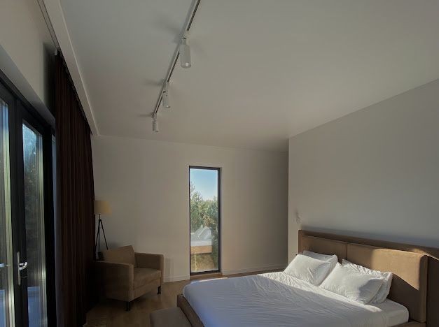 2 этаж: мастер спальня с санузлом и гардеробной, общий санузел, 2 комнаты (без мебели, можно сделать спальни/детские/кабинет)