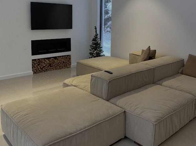 Дом оснащён встроенной техникой: посудомоечная, стиральная машина, микровлановка, духовка, телевизор, био-камин. Кондиционирование на первом этаже и в мастер спальне.