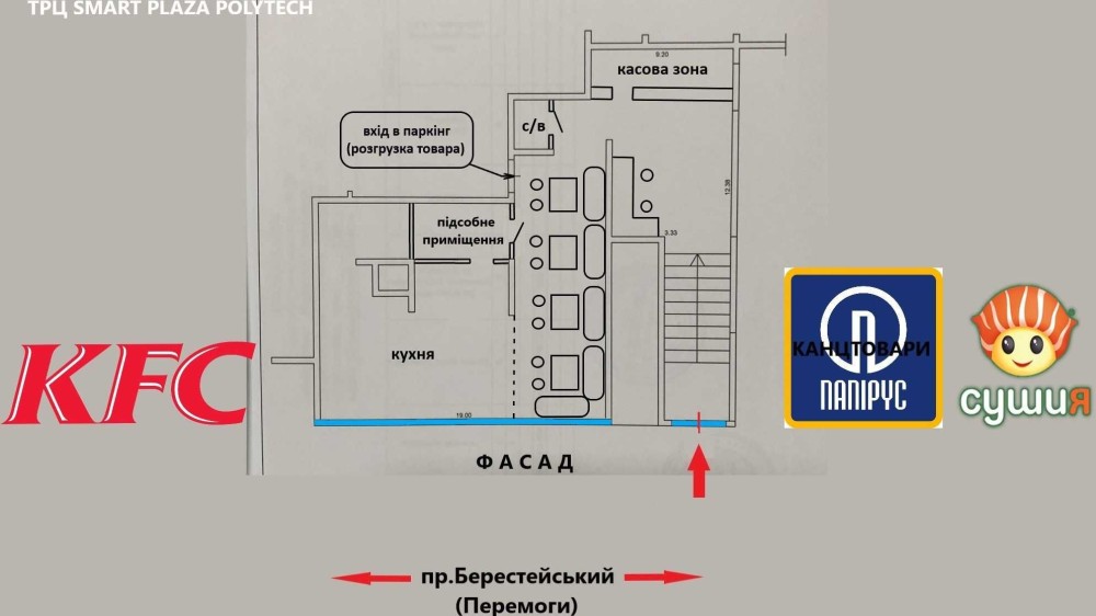 Оренда фасадного приміщення у ТРЦ "Smart Plaza Polуtech". проспект Берестейський (Перемоги), 26 Шевченківський р-н, метро Політехнічний Інститут.