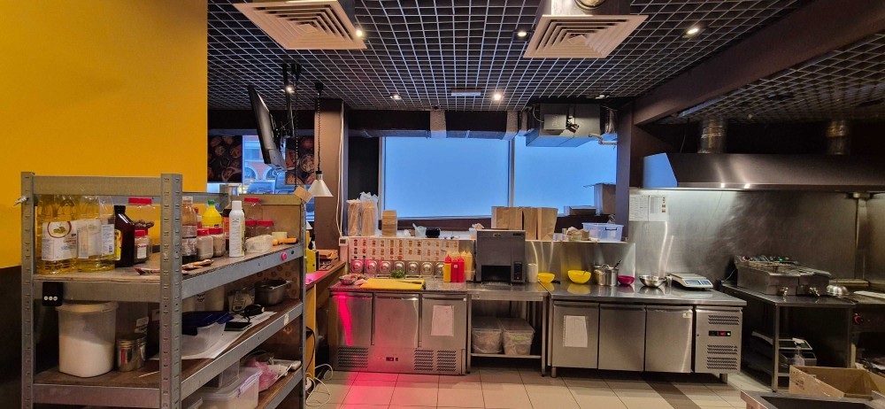 Комунікації: електрика (26 кВт з можливістю збільшення), вода, каналізація, опалення. Вентиляція приточно-витяжна, власна витяжка на дах, декілька мокрих точок.
