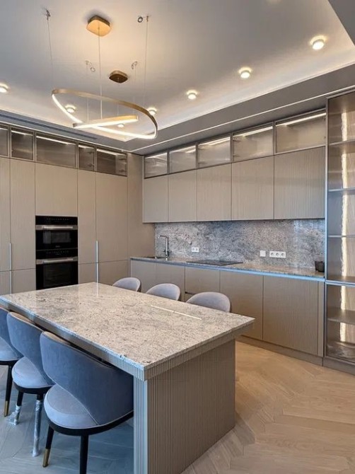 Зроблений преміальний ремонт з використанням фурнітури Hansgrohe, підлога з натурального каменю, паркет Levens, кераміки Villeroi Boch та техніки Miele.
