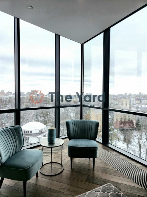 У апартаментах великі панорамні вікна, з яких відкривається чудовий вид на місто, ботанічний сад, або Володимирський собор.
