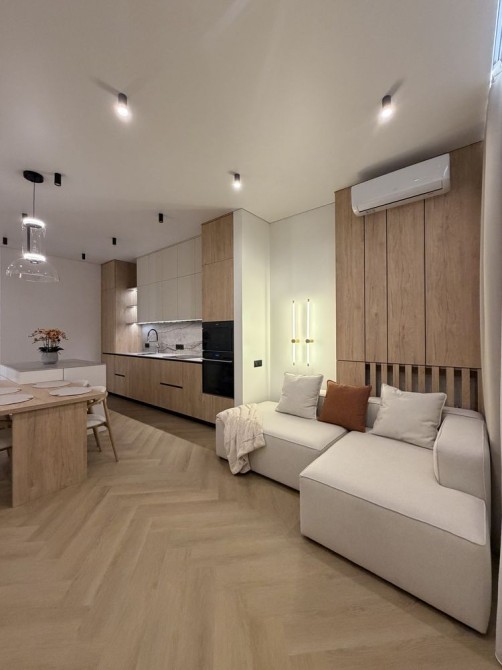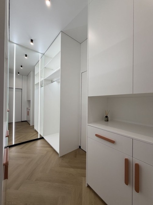 В квартире сделан ремонт премиум уровня. Есть стиральная и сушильная машины, теплый пол.