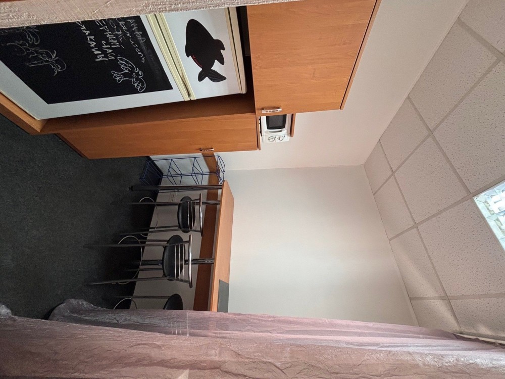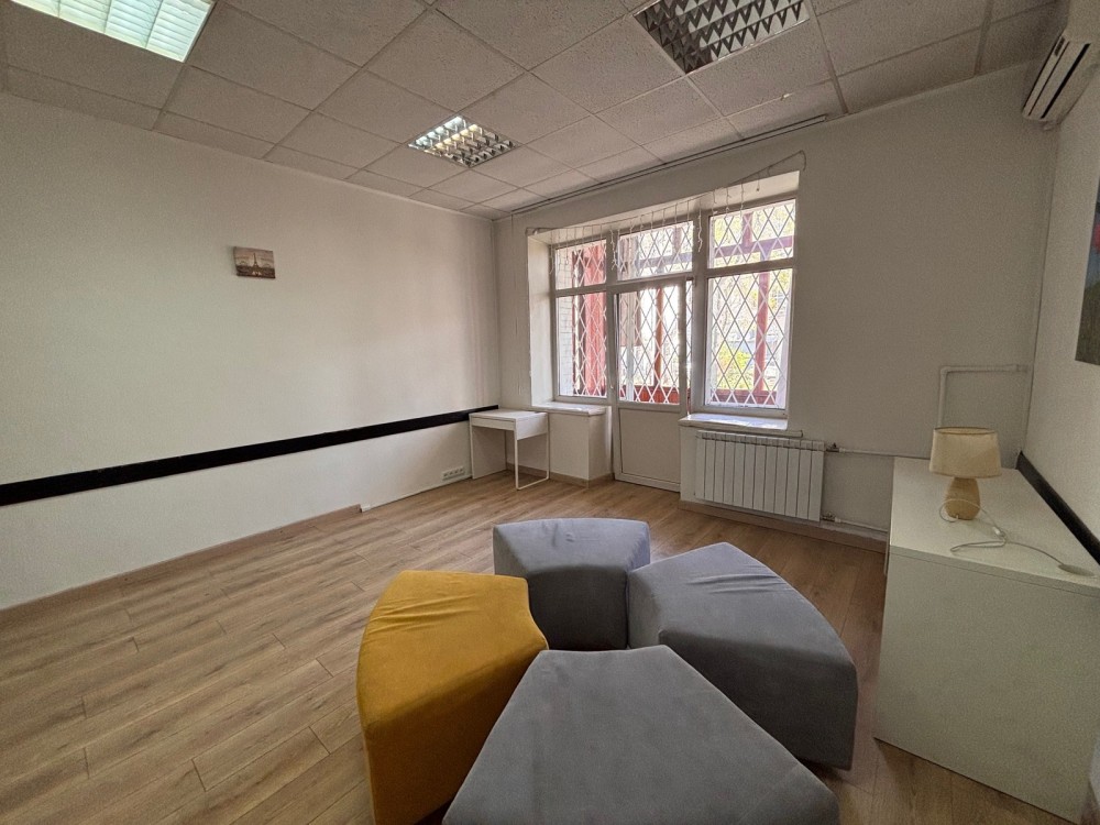 В квартирі зроблений офісний ремонт, вікна виходять у тихий двір.