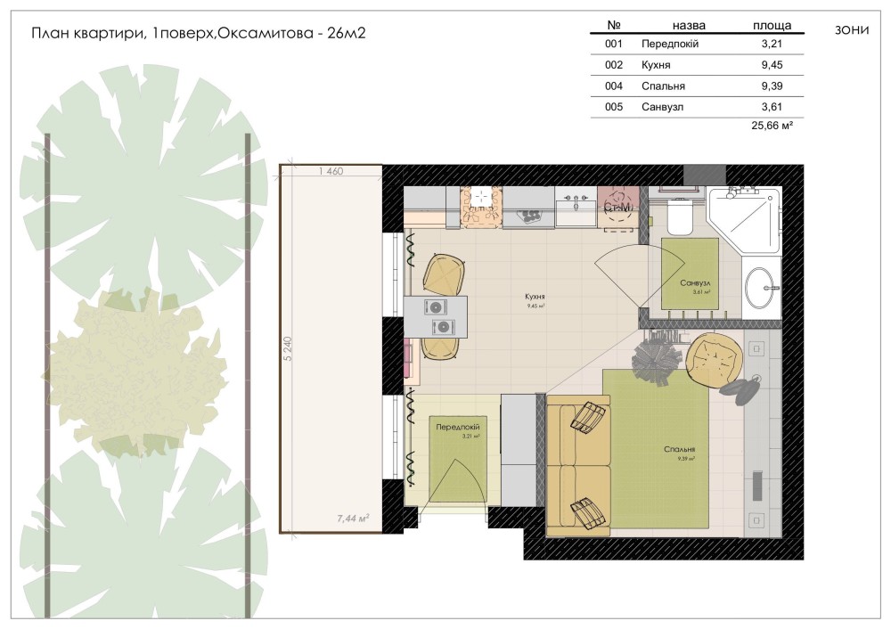 • Загальна площа 26 м2