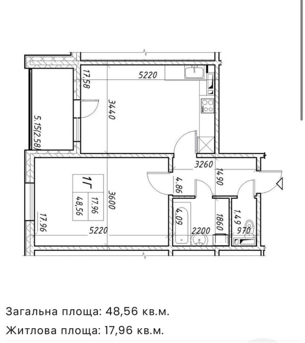 • Загальна площа 48.56 м2