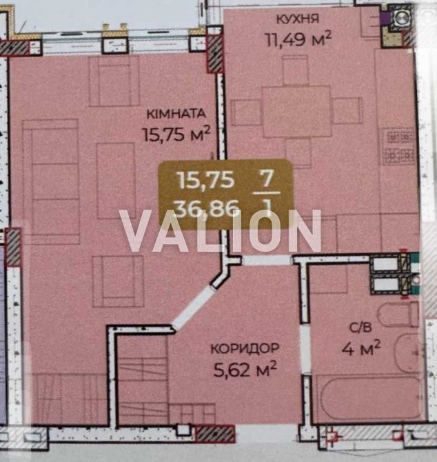 • Загальна площа 37 м2