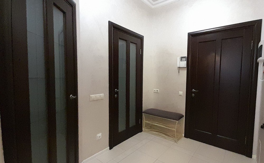 - планування: велика вітальня об'єднана з кухнею, затишна спальня з балконом, ванна кімната, гардеробна, гостьовий санвузол