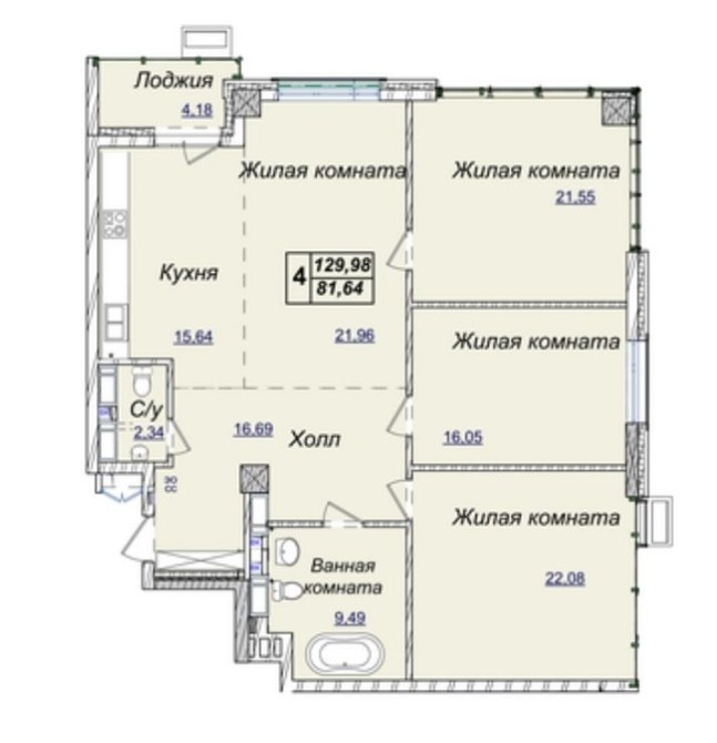 - Чотирикімнатна