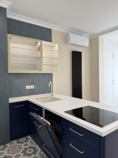 Реалізований авторський проект, робили не для продажу. Все абсолютно нове, продаж з меблями та технікою. У квартирі зроблений якісний, стильний ремонт із використанням дорогих матеріалів. Стан — заїжджай і живи! Відкритий простір вітальні, кухні, столової, виглядає гармонійно, завдяки вдалому зонуванню.