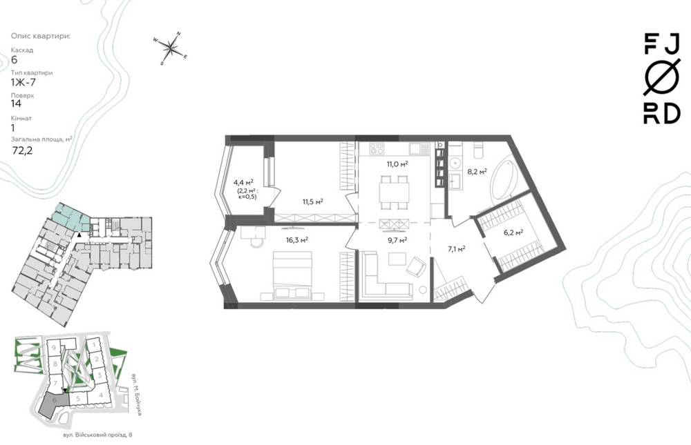 Без%. Продаж видової 2к кв. пл. 72,2м2 в ЖК Fjord, Військовий проїзд 8 - фото 6