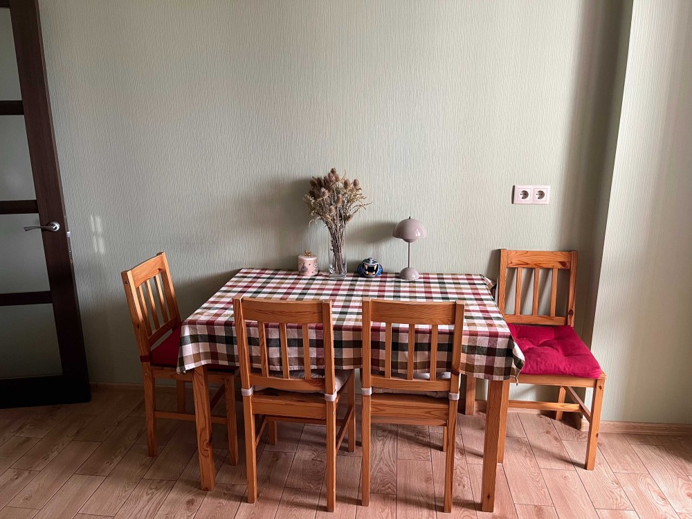 У квартирі одностороннє планування та якісна шумоізоляція. Розташована на комфортному 9 поверсі. В будинку - цілодобова охорона. У дворі — дитячий майданчик, поряд — Голосіївський парк.