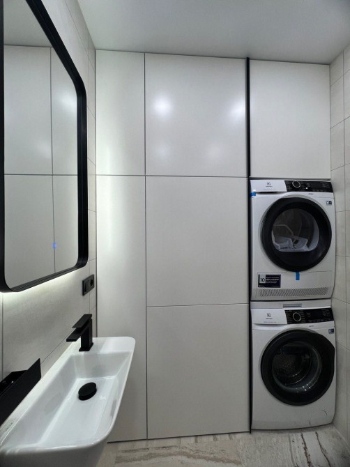 * Сучасна техніка: вбудований холодильник, посудомийна машина, духова шафа, варильна поверхня, пральна та сушильна машини, бойлер, кондиціонер, телевізор із якісною акустикою (саундбар + сабвуфер)