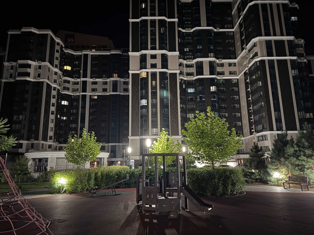 Територія житлового комплексу закрита та охороняється, є відеоогляд, тут є власні магазини, кафе, салони краси, зона відпочинку. Дворівневий підземний паркінг.