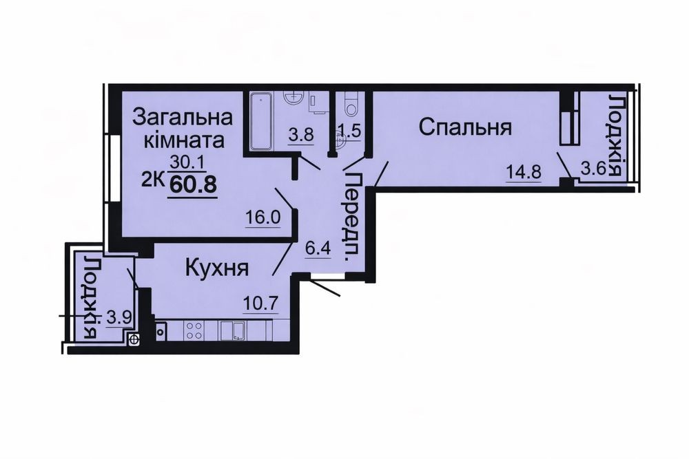 • Загальна площа 61.9 м2