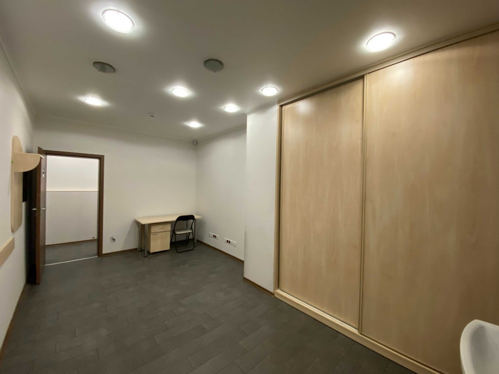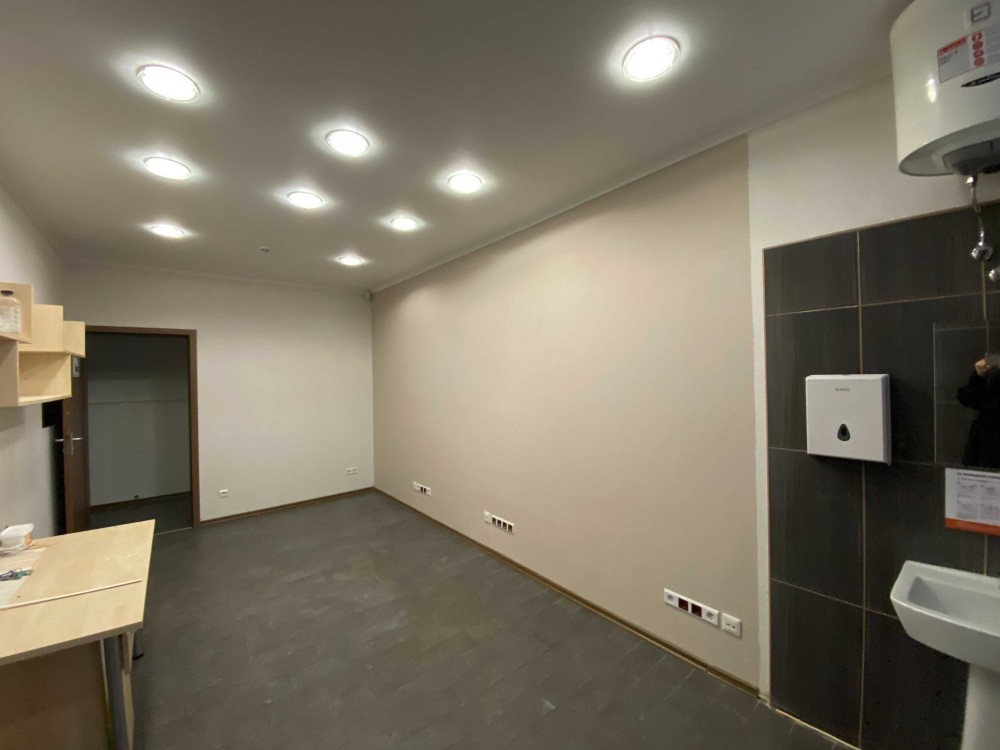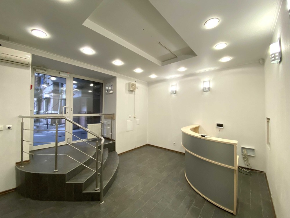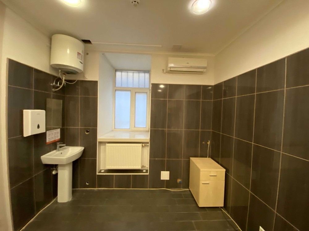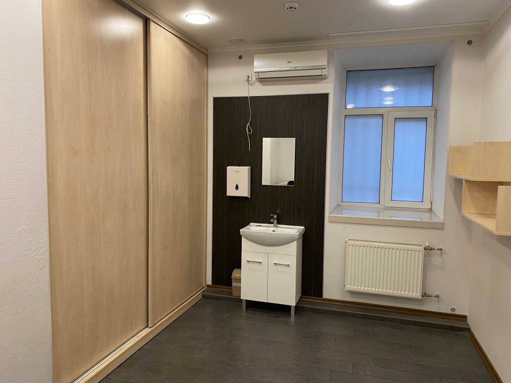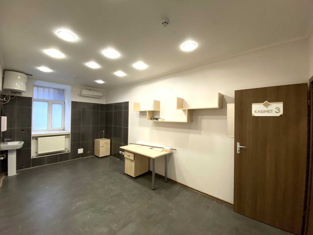 Планування: Кухня, 3 кабінети, 2 санвузли, Ресепшен. Кабінети обладнані кондиціонерами, рукомийниками, шафами, а також мокрими місцям. Єможливість встановлення душової кабіни.