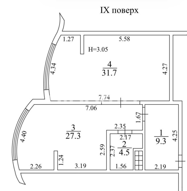 • Трикімнатна
