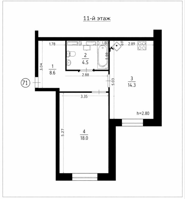 • Площа кухні 11 м2