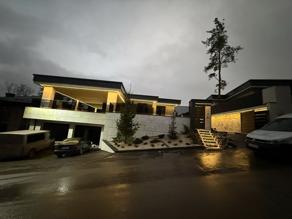 Гараж — 70 м², тераса — 54 м², навіс на 2 авто, є додаткові паркомісця.